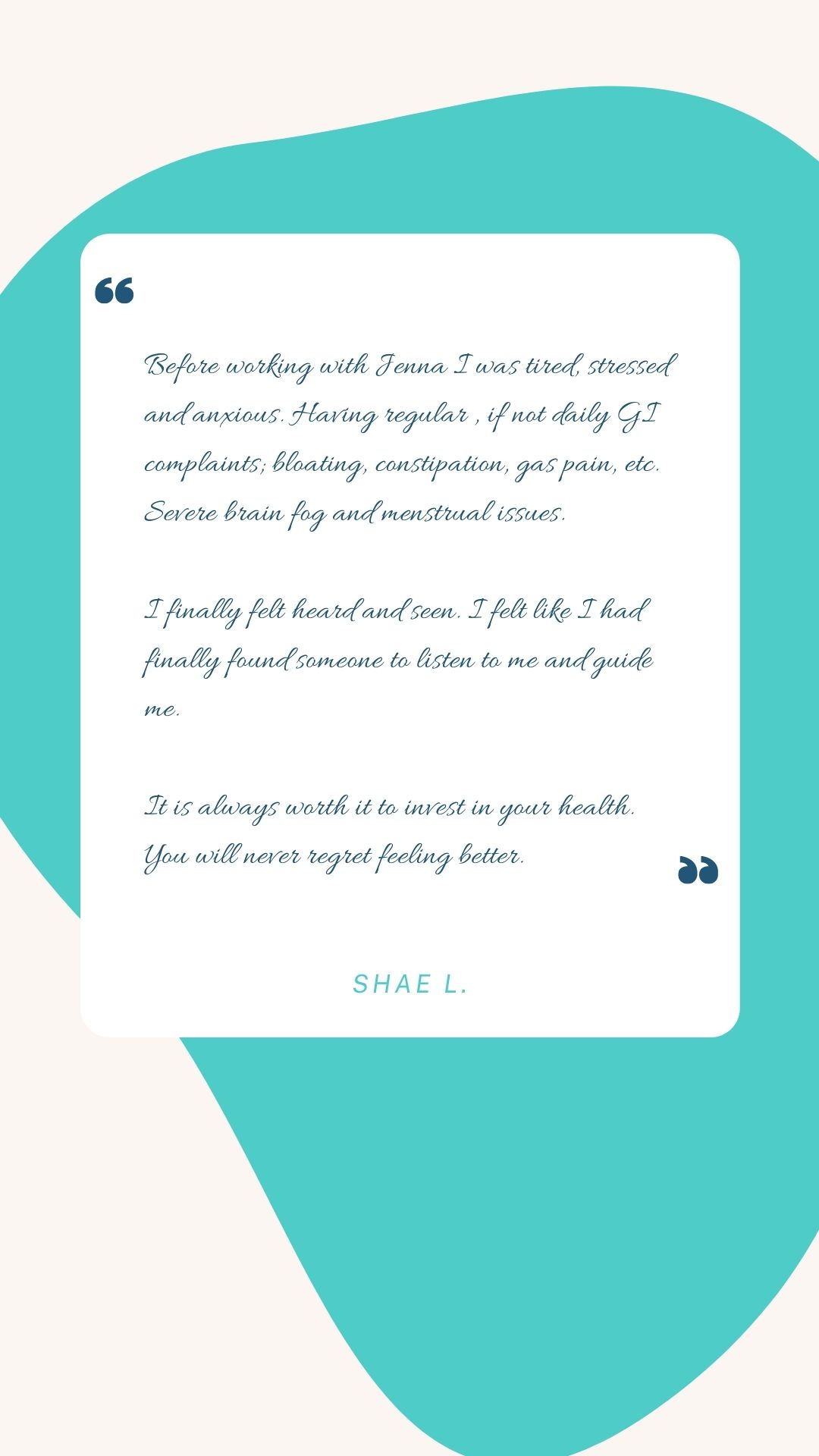 "It is always worth it to invest in your health. You will never regret feeling better."
